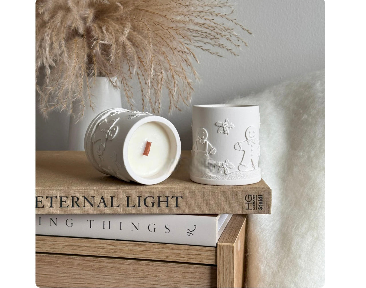 Plongez dans la magie de Noël avec notre bougie Gingerbread, coulée à la main dans un pot artisanal texturé représentant de tendres petits bonshommes en pain d’épice.